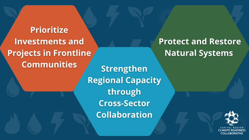 Natural hazards and disasters, such as heat waves, floods, drought, and fire, disproportionately affect low-income, rural, and historically marginalized groups, who often experience higher vulnerability and risk factors. The Capital Region Climate Readiness Collaborative will support projects, advocacy, and funding efforts that prioritize the health, safety, and resilience of frontline and disinvested communities across the Capital Region who are disproportionately burdened by climate impacts. The Capital Region Climate Readiness Collaborative recognizes disinvested communities as those experiencing income disparities, systemic racism, racial inequalities, climate change vulnerabilities, historical systemic oppression, geographic isolation, and exclusion from traditional systems of opportunity.